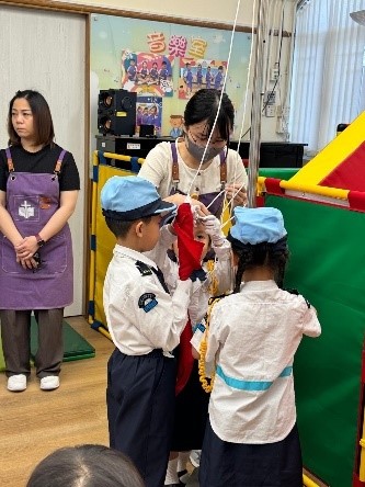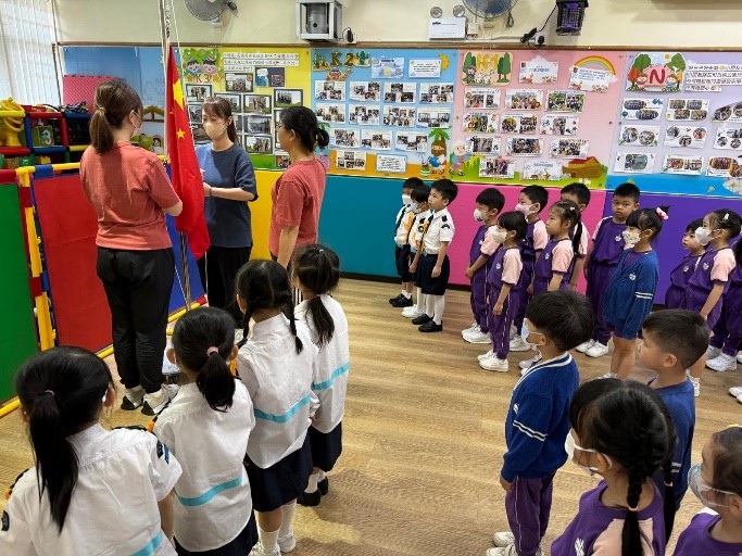 2025年10月1日是是中華人民共和國成立76周年紀念日。為了讓幼兒建立國家觀念,我們特別安排了「國慶日紀念活動」。在活動中,教師介紹了中華人民共和國的成立日及國慶日慶祝活動,並進行升旗禮。幼兒在升旗禮的過程中展現了正確的升旗禮儀。另外,教師更與幼兒觀察國旗及區旗,認識其象徵意義。是次活動不但讓幼兒增強愛國情懷,更激發了幼兒對國家的自豪感。