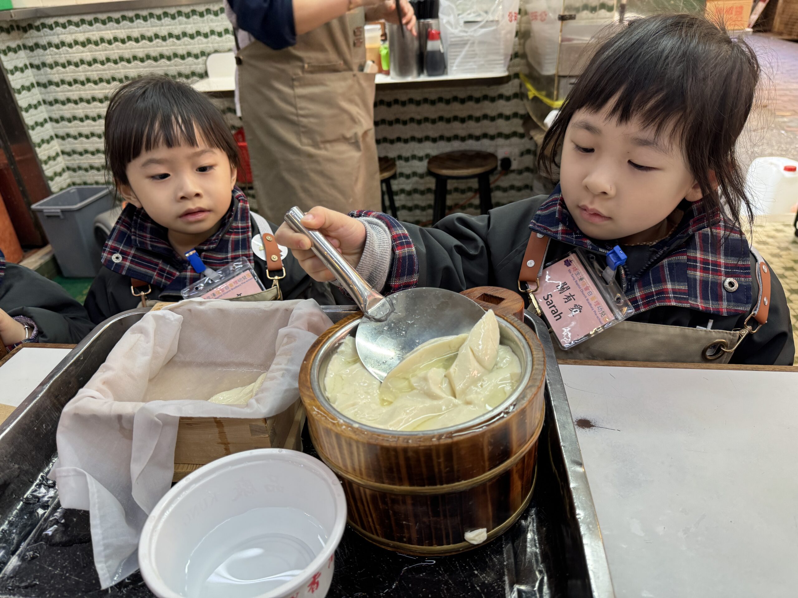 在「公和荳品廠」導賞活動中,導賞員帶領幼兒探索香港百年老店的豆製品製作奧秘。在師傅的親身示範中,幼兒能近距離觀察豆腐花與豆漿的誕生,認識黃豆經由石磨研磨,至煮漿壓成豆腐的每個步驟。另外,導賞員更分享了公和荳品廠的歷史發展,以及如何用傳統工藝做出現代美味豆品。最後,幼兒更能品味新鮮的豆製品,感受傳統工藝及認識中華飲食文化。