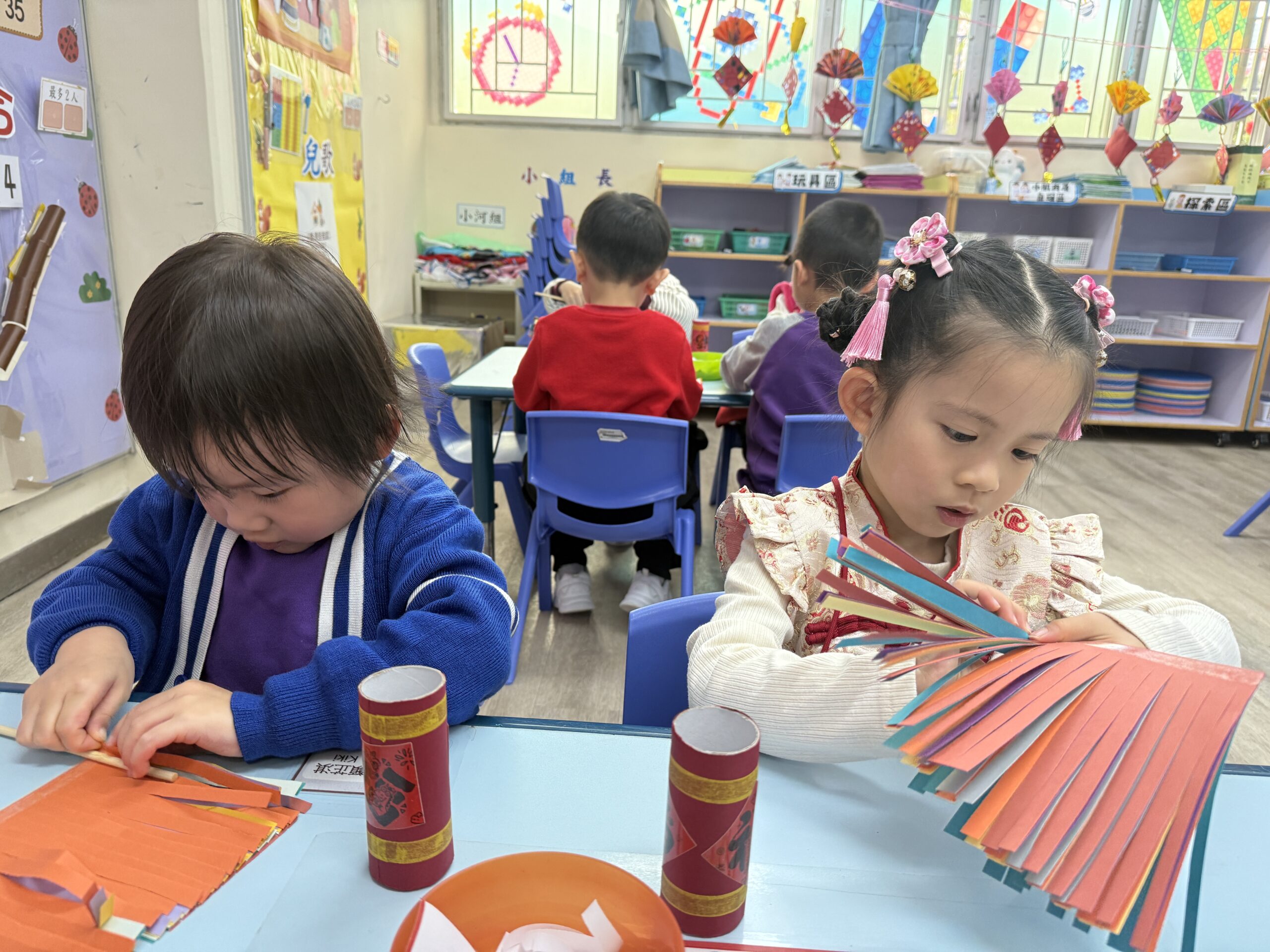 在中華文化藝墟中,幼兒將觀察糖蔥餅的製作過程,體驗其香氣與文化故事,感受傳統美食的魅力。同時,他們還能參與捏製色彩繽紛的麵粉公仔和學習中國剪紙,欣賞剪紙藝術的精美與寓意,探索中華文化的豐富內涵,讓每一個創作都充滿童趣與文化意義!