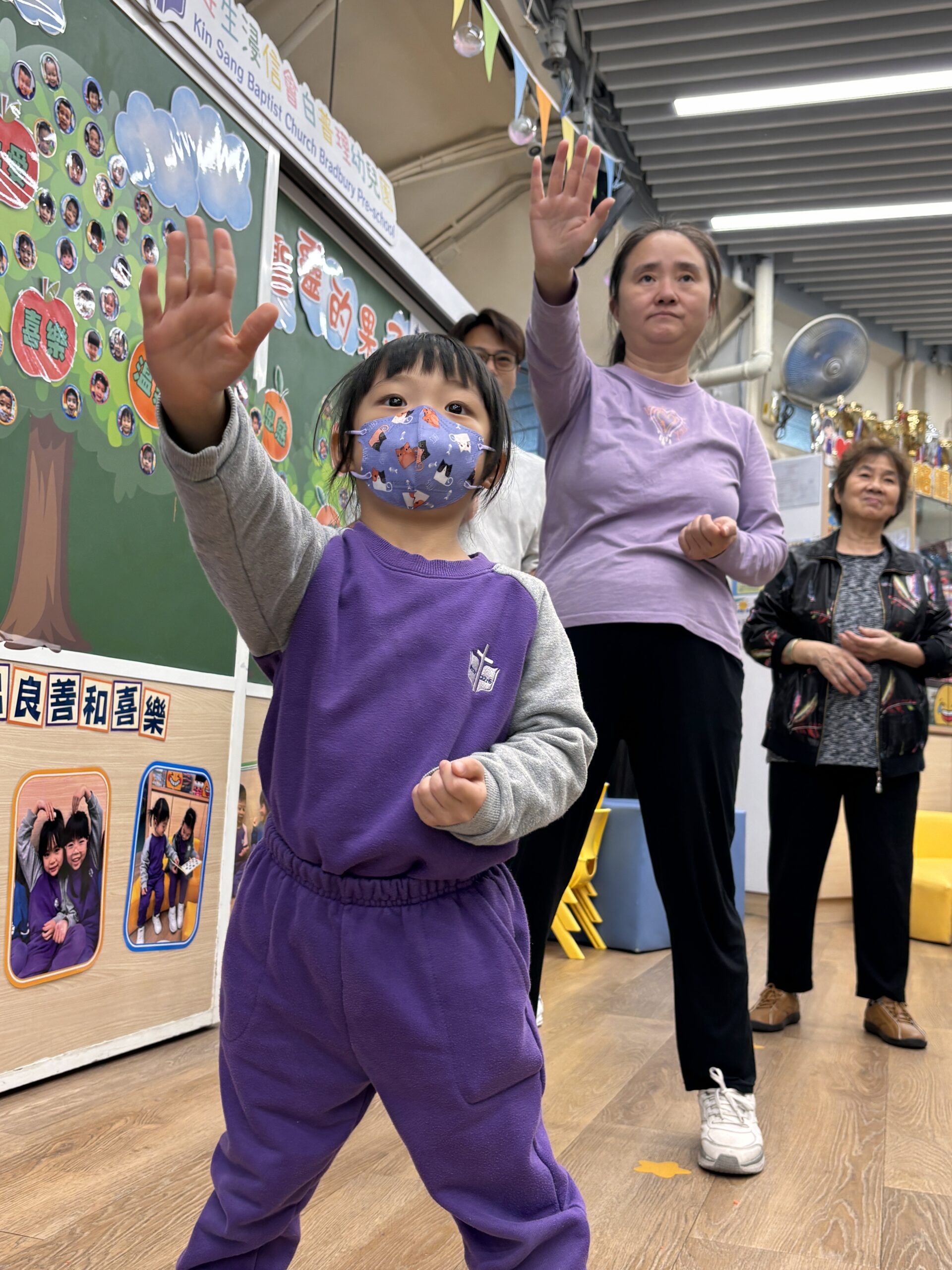 學校邀請了葉問詠春體育會委員會及教練余師傅,帶領學生及家長進行「親子武術體驗」。透過專業指導,親子一起學習詠春拳基本動作,如馬步站樁、踢腿、出拳及呼吸節奏控制等。隨後,余師傅更指導家長與幼兒進行配對練習,大家都十分認真地跟隨。是次親子體驗活動不僅能鍛鍊體能,余師傅的精彩示範與大家的熱情投入,有效內化了尊重、紀律、合作與自我管理等精神,讓中華武術文化在校園生根發芽。